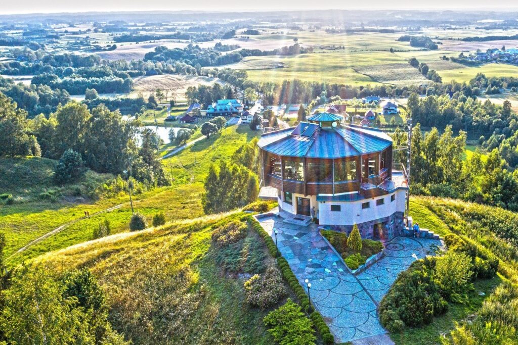 There are two ski lifts in the Piękna Góra Inn (272 m above sea level). In the summer, a big attraction is a chairlift which takes visitors to the only cafe in the region with a revolving floor, where within an hour, making a full circle, you can admire the panorama of the postglacial land of Gołdap and the extraordinary Romincka Forest. There is also a bowling centre and a rope park with interesting routes for both children and adults. The local restaurant serves excellent regional cuisine and venison.