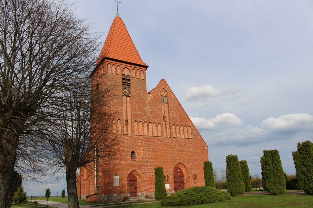 To mark the bicentenary of the coronation of the first Prussian king, Frederick I, which fell in 1901, 14 “jubilee churches” were built in East Prussia. One of them, a neo-Gothic church, designed by the Berlin architect Albert Fisch and built on a hill, reaching about 140 metres above sea level, can still be admired in Olszewo Węgorzewskie. The church boasts historical sacral equipment: organs and organs gallery from 1946 made in Konigsberg, pulpit and 17th century baroque side altar.