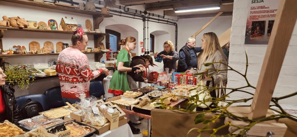W programie znalazły się również warsztaty kuchenne, w tym warsztat wypieku świątecznych ciasteczek, który przyciągnął wielu młodych i starszych cukierników. Kolejnym wyjątkowym punktem była czytanka baśni Andersena w wykonaniu Lucyny Kulikowskiej – dziękujemy za tę ciepłą i pełną magii chwilę.