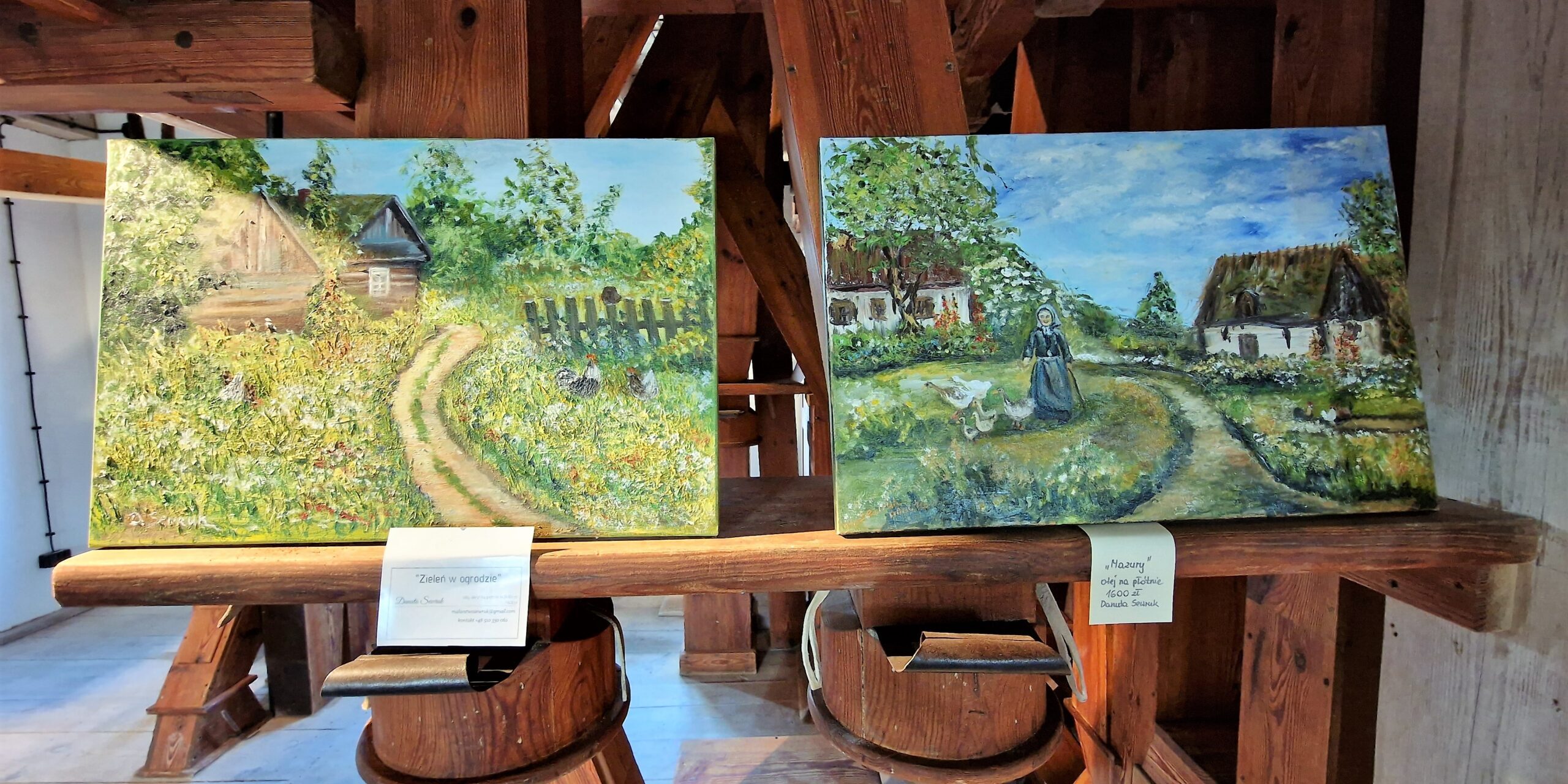 9 czerwca mieliśmy w młynie prawdziwe artystyczne święto. W nasze progi zawitały wyjątkowe obrazy, a na nich stare Prusy, dziś już dla nikogo nieznane. Wspaniałe dzieła, oprawiane w zabytkowe, drewniane okienne ramy, wymalowała nasza rodzima artystka, pani Danuta Sewruk z Węgorzewa.